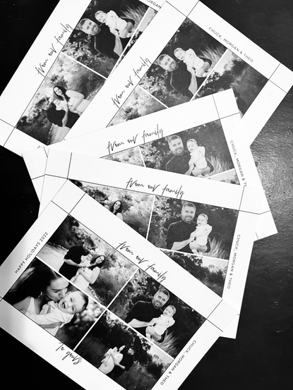 In the past, I would mail holiday cards that I found unused but secondhand - from estate sales, garage sales or my buy nothing group. But I’m so excited about our new little guy that I wanted to do the thing and get personalized holiday cards. It was also a prime opportunity to get Chuck to wear a sweater- my absolute favorite on him!!